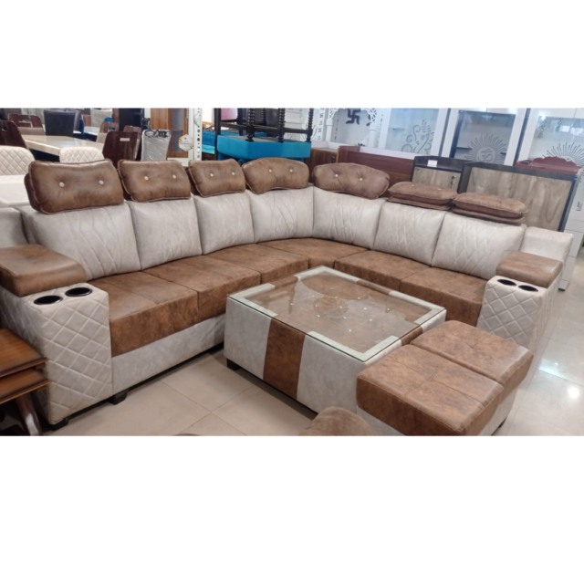 Invest in our 7 seater sofa set with 2 puffy ottomans and elevate the style and functionality of your living space. Create a warm and inviting atmosphere that will impress your guests and provide a cozy haven for you and your loved ones.