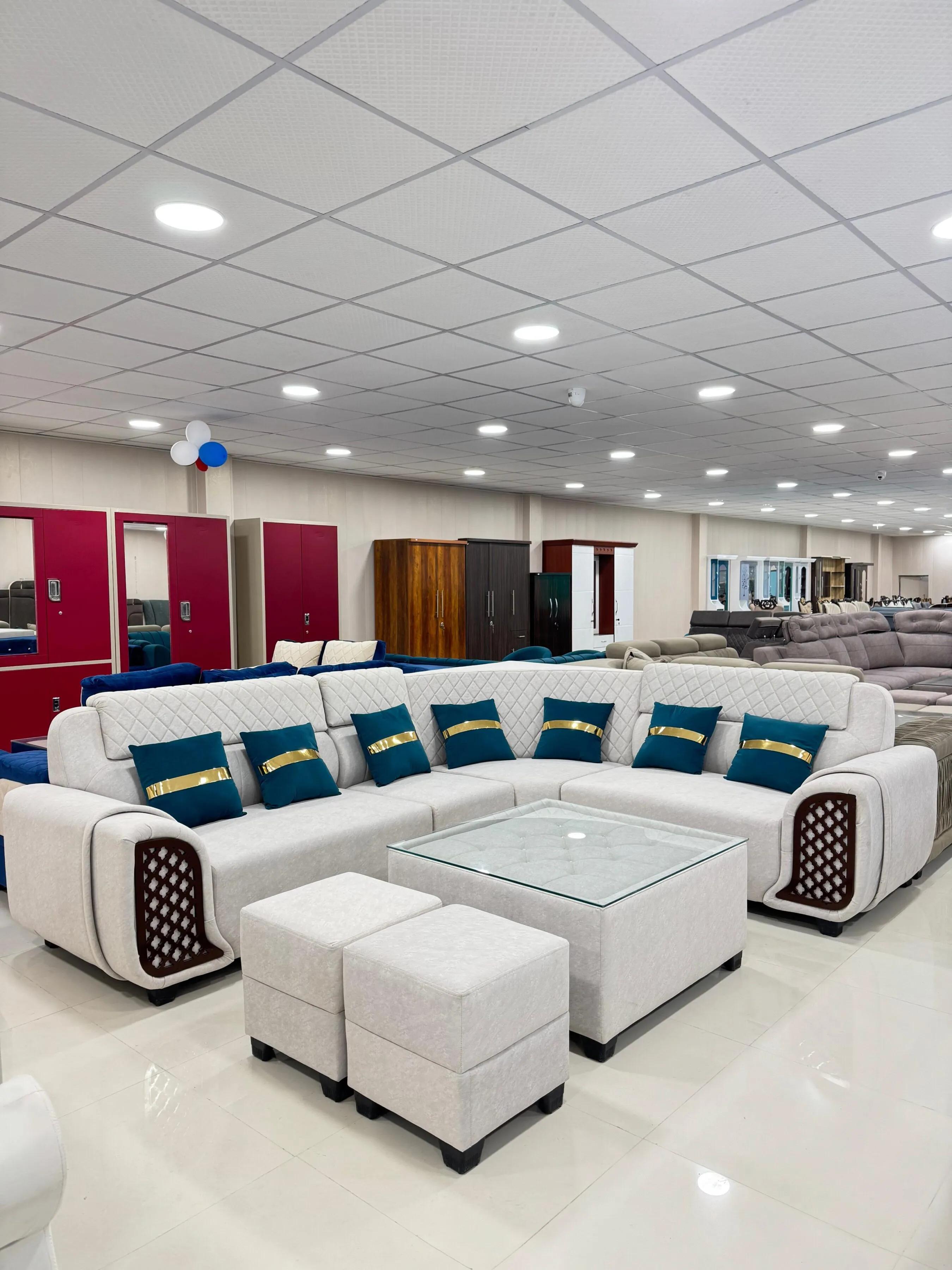 Upgrade your living room with our 7 seater sofa set with 2 puffy. Experience the perfect blend of comfort, style, and functionality. Order yours today!