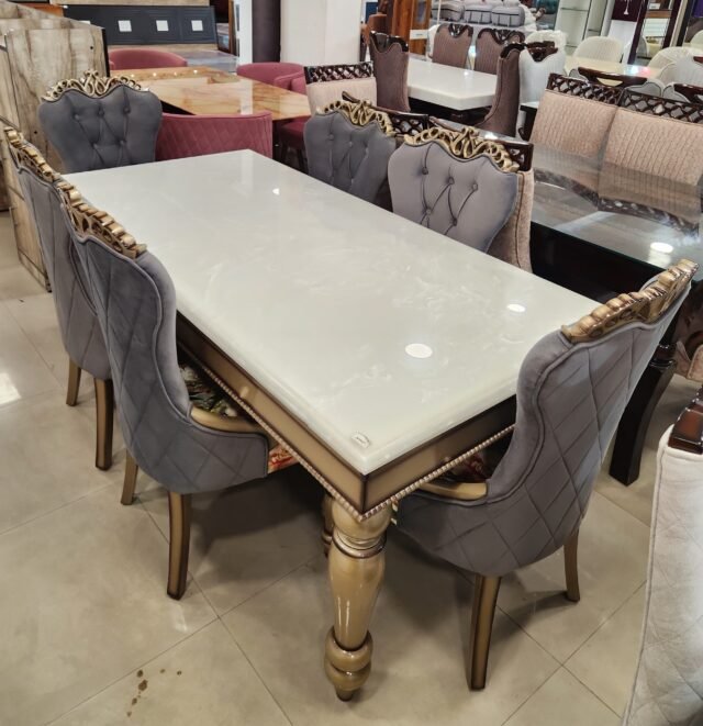 Six Seater Golden Polish Dining Table with "72x36" Onyx Marble