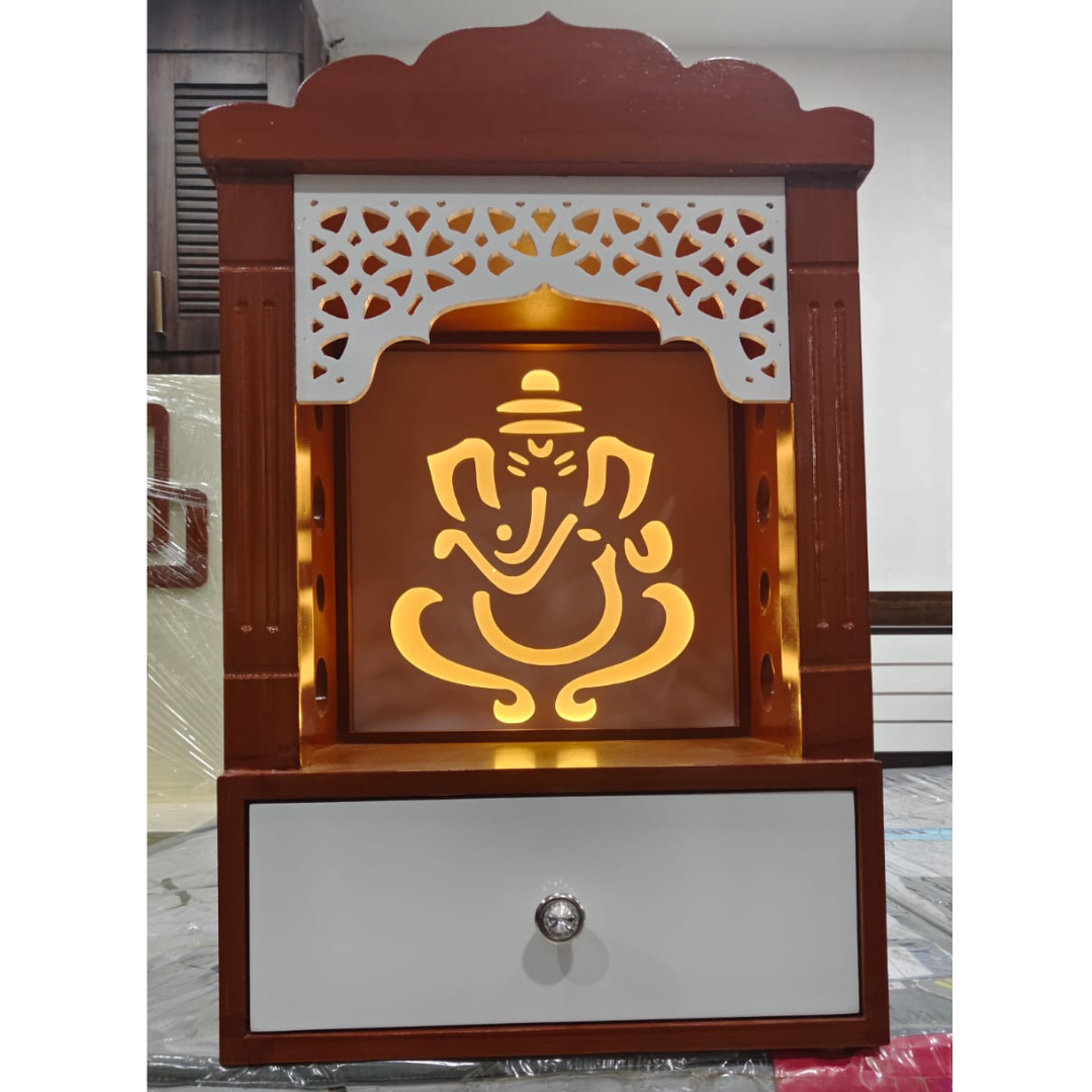 Our temples are not just beautiful; they are also designed with functionality in mind. With thoughtfully arranged shelves, drawers, and compartments, our temples offer ample space to store your religious items, including idols, lamps, incense, and more. The lighting arrangements and smooth finish enhance the overall ambiance, creating a serene and inviting environment for worship.